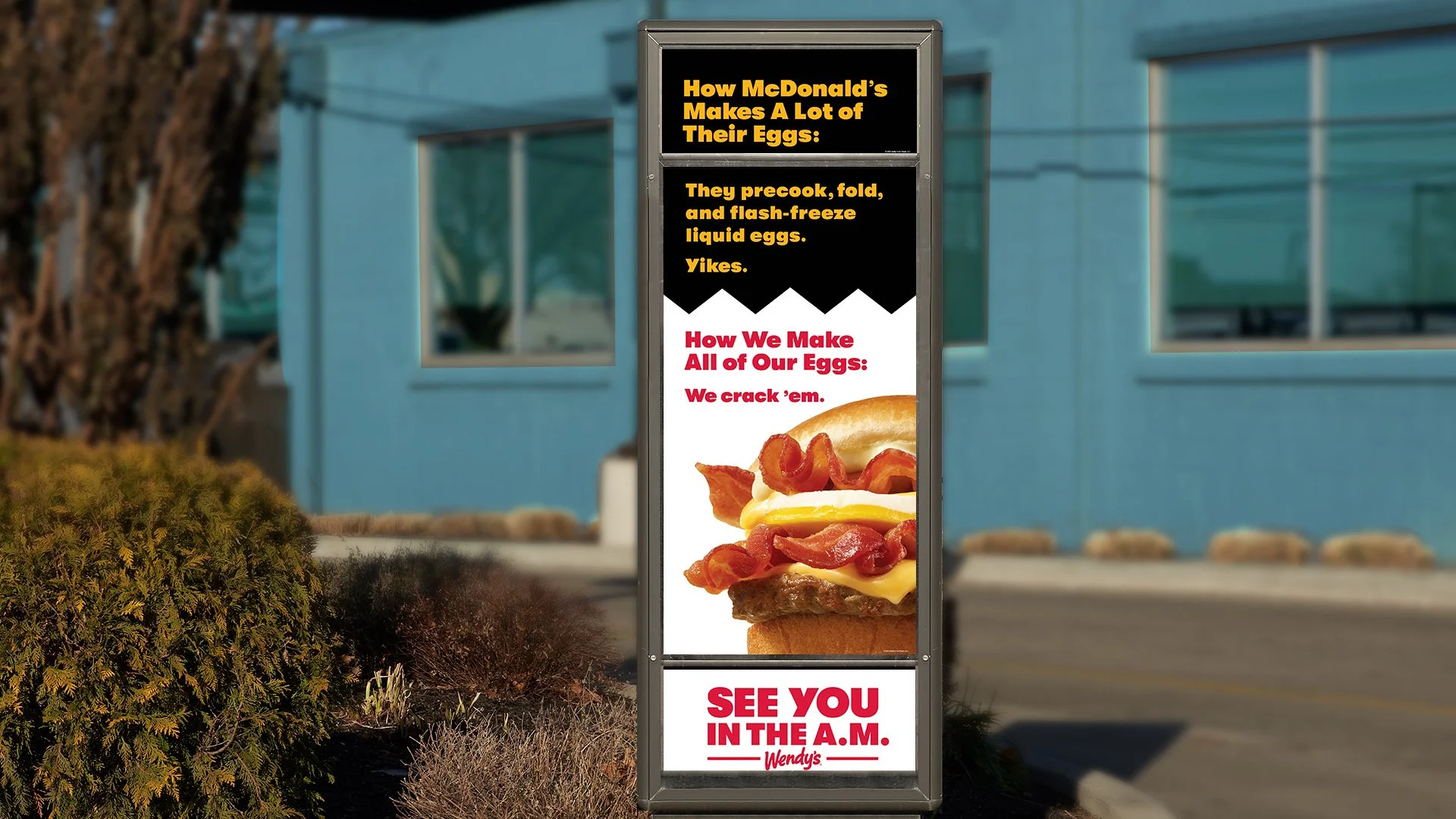 Wendy’s has faithful lunch and dinner customers, but many go elsewhere for breakfast. We were tasked with letting their rest-of-day consumers know one big reason why they should stick with Wendy’s for breakfast: Wendy’s only uses fresh-cracked eggs. McDonald’s McDoesn’t. In doing so, we turned unsexy POP signage into a shareable shot at our biggest competitor.